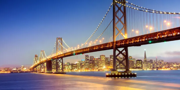 舊金山-奧克蘭海灣大橋位於舊金山灣,是一座連接舊金山、耶爾巴布埃納島(香草島)和奧克蘭的橋樑,也是橫跨美國80號州際公路的一部分,更是世界上跨度最大的橋樑之一。橋上可以遠眺整個舊金山灣的美景,景色不比金門大橋差。
