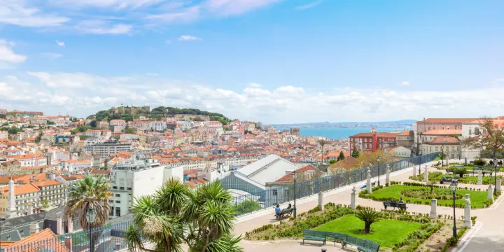 聖佩德羅•阿爾坎塔拉觀景台是一處平台,在這裡可以俯瞰裡斯本城區以及聖若熱城堡所在的山坡。佩德羅五世國王將這片本欲用於延長阿瓜裡弗渡槽(Águas Livres)的土地改造為兩層花園,其間點綴著眾多葡萄牙人物的雕像和紀念地。