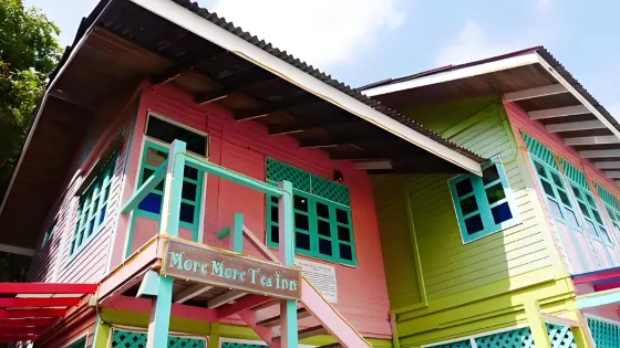 則評價因為一部電影而成名的景點,熱浪島不是一個,但卻是最浪漫、最美麗的一個。電影《夏日嬤嬤茶》使熱浪島名聲大噪,因電影拍攝建起的五彩小木屋,後來成為熱浪島上最熱門的景點和留影點之一。現在小木屋雖然已經拆除,但在原址建造的一座紅綠相間的房子仍然命名為“嬤嬤茶屋”,並且吸引著眾多遊客。現在這座房子一層是商店,二層是酒吧。至今小屋門前還保留著英文More More Tea Inn的藍色招牌。小屋的側面有一個用花朵凹出來的心型花環,非常適合情侶們在這裡合影留念。另外,小屋不遠處還有三個人形立牌,分別是當年電影中的三個男主角,赤膊著上身,穿著花褲衩,手裡彈著吉他,再現了電影中的畫面,讓人們重溫那段浪漫唯美的愛情故事。如今小屋的一層是一個旅行紀念品店,可以買到各種冰箱貼、頭飾及海龜造型玩偶等。另外,這裡出售的冰激淩好吃而且不貴。到了晚上這裡又是另外一番燈紅酒綠的景象,很多遊客都會跑到小屋來,坐在露天的位置上,點上一杯啤酒,吹吹海風,聽聽輕快的音樂,感受浪漫的夏日氛圍。此外,如果時間充裕的話,還可以選擇在小屋前的海域浮潛,暢享熱帶風情。