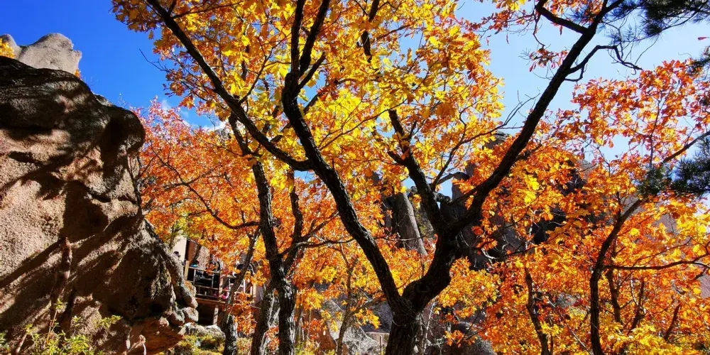 公園內最知名的景點有夫妻石和雞冠砬子,夫妻石,顧名思義,就是兩座緊密貼近的巨石,它們聳立於群石之間,格外醒目,酷似一對恩愛夫妻在訴衷腸。雞冠砬子是一處非常形象的大岩石,每到清晨,陽光初照,砬子宛如一隻雄雞在昂首鳴叫著,迎接著一天的來臨。如果遇到天氣不好,霧蒙蒙的時候,它又看上去很像雞冠,因此得名。此外,小黃山景區內的飛來石、一線天都很有安徽黃山景緻的神韻,記得去哦。