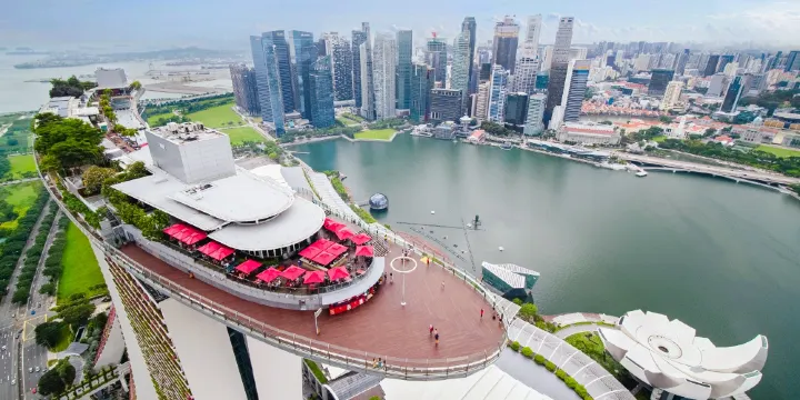 在56層高的全新視角探索這座城市,新加坡世界級的城市景觀在此呈現獨特而令人屏息的美景。盡情欣賞鬱鬱蔥蔥的濱海灣花園及城市地標,例如濱海藝術中心榴槤造型的圓頂建築。