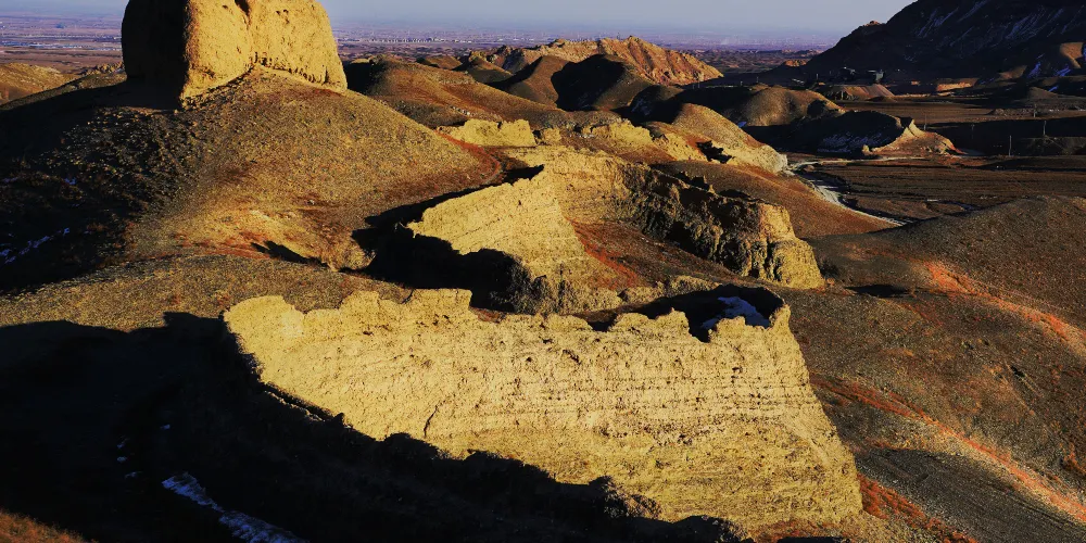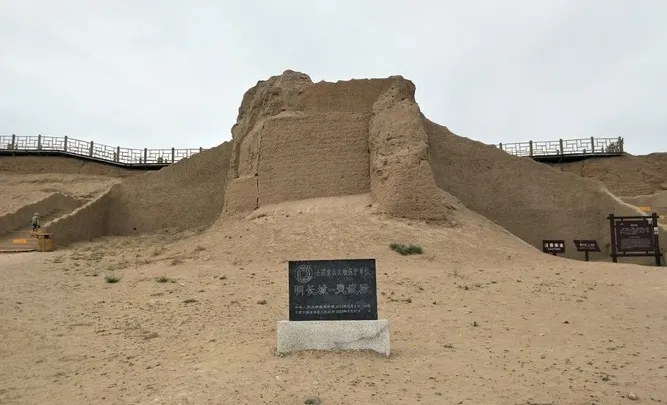三關口明長城是寧夏與內蒙古阿拉善左旗的交界地,三關即從東向西設頭道卡、二道卡和三道卡,後人稱之為三道關。這里山脈蜿蜒曲折,地形險峻,頭道關關牆南北與長城連接,北側城牆沿山脊向北延伸,牆體以石塊壘砌,原兩山夾峙的山坳中,建有關隘。