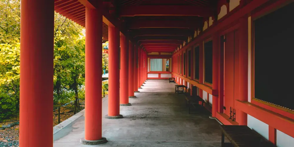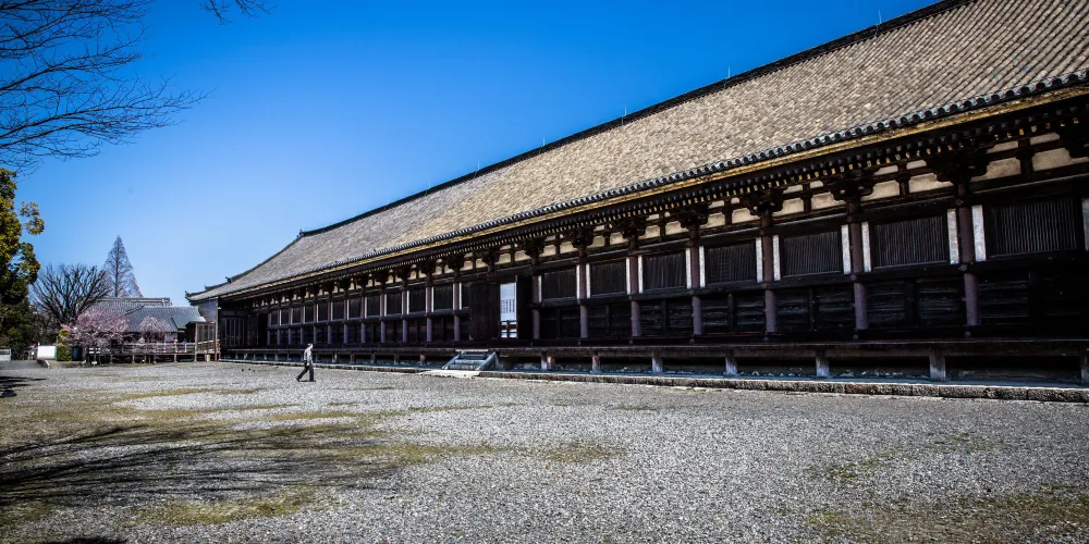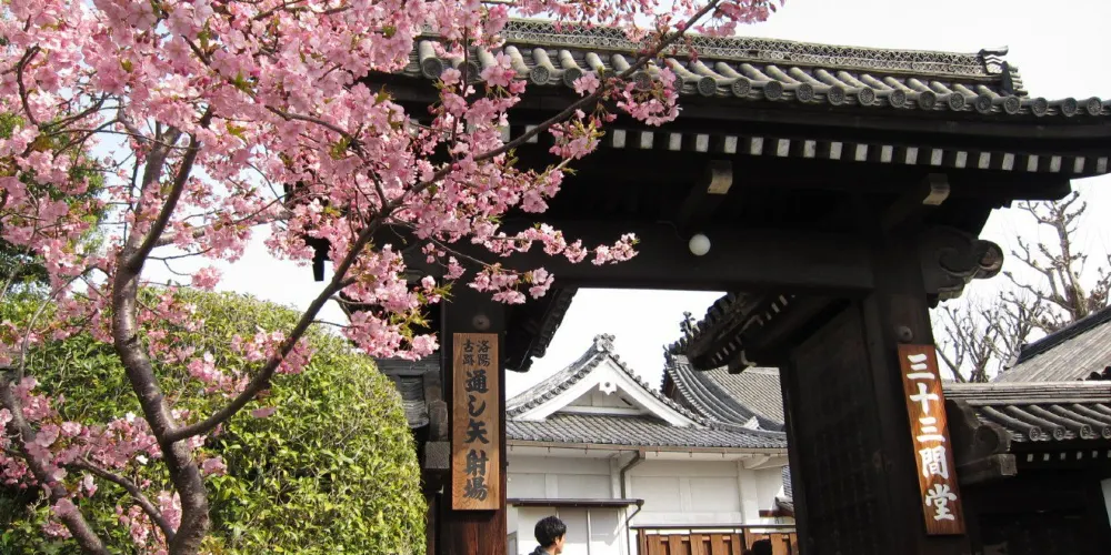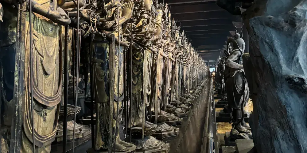 三十三間堂也叫蓮華王院,其南北向達的主殿是日本長度屈指可數的木造建築之一。建築的外觀簡潔樸素,但內部的景象卻十分震撼。殿內供奉著被列為日本國寶級的佛像和文物,尤其以數量驚人的千手觀音像而聞名。這些觀音像形態各異,從服裝、法器到表情、姿態都各不相同。這裡也以“射箭競技”聞名,每年都會在此舉行射箭儀式。