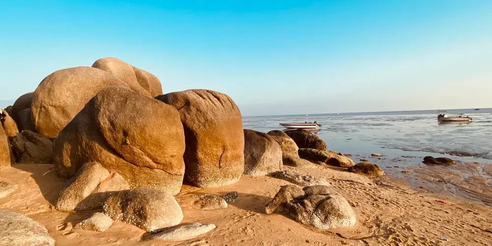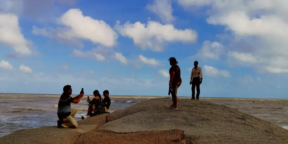 三娘灣位於欽州犀牛腳鎮東面的海灣邊,南臨北部灣,背靠烏雷山。站在三婆石上,早上起來可以看日出,晚上可以觀賞夕陽落下;還可拜烏雷伏波廟、遊威德寺、觀東漢大將風采;還可以登上漁船出海觀光,品海鮮、沐海風,觀賞珍奇的中華白海豚。