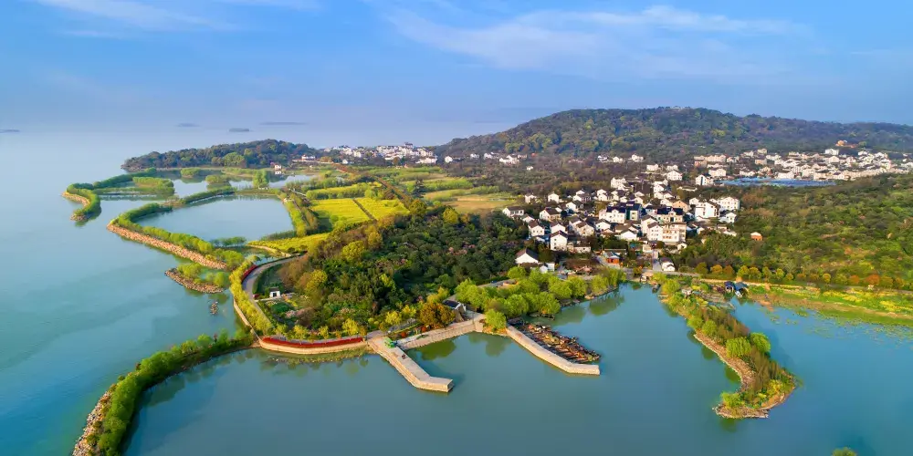 軒轅宮在楊灣古街西北端臨近太湖的山坡上,始建於唐貞觀二年(公元628年),當代園林建築專家陳從周先生考證,正殿的建築建於元代(1338年),雖然經過曆代修繕,但現有殿內柱礎、棱型四金柱、簷柱及大部分梁架、鬥拱等木結構均為元代遺物無疑。軒轅宮保留至今的元代木構建築在江南地區已存量不多,彌足珍貴,具有很高的建築藝術水平,所以這裡成為建築師、考古家、旅遊者所瞻仰、觀摩的名勝地。