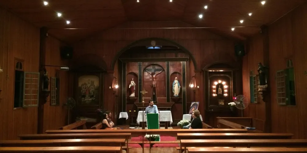 教堂內部設計簡潔而富有視覺衝擊力。內部圓形大廳可容納約 3,500–4,700 人。內部裝飾包括由當地藝術家 Zanzal Mattar 所作的壁畫,以及 Conrado Moser 創作的七米高木質十字架。教堂內部圓錐結構中還有若干樓層可供攀登或參觀,並設有觀景台,可俯瞰瑪林加市全貌。