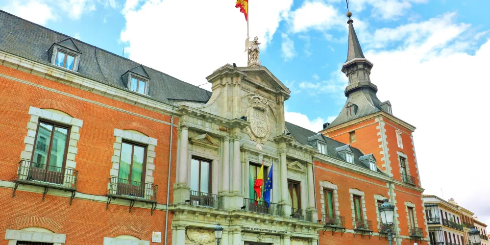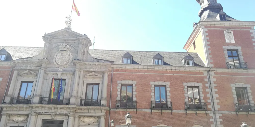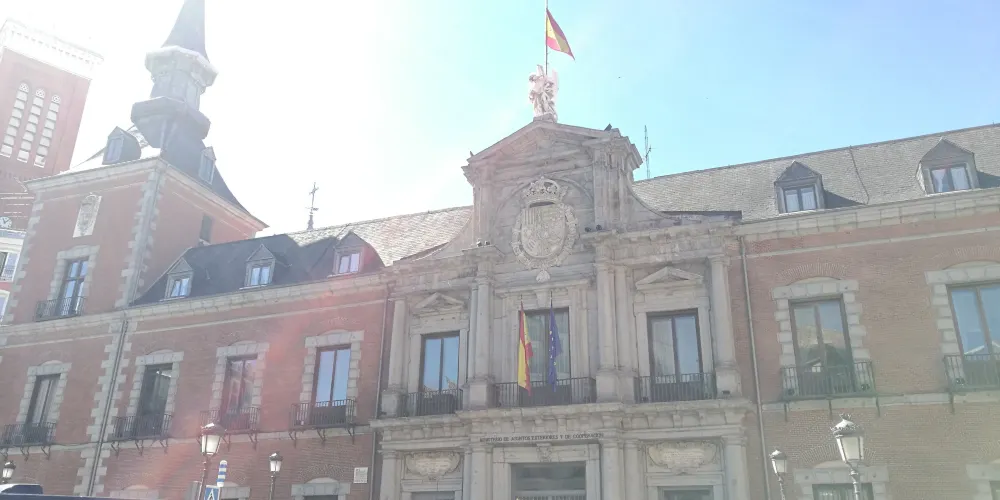 聖克魯斯宮是一座巴洛克風格的建築.是馬德里必去的景點之一,紅灰色的建築顏色令人感覺熱情洋溢,就如同這個民族一般充滿激情。始建於1629年的聖克魯斯宮,是由當時的國王菲利普四世命令建造。在當時,這座建築是當成法庭和監獄來使用的。後來於1767年改造為王宮。不幸的是其在1791年的一場大火中被大部分焚燬,衹剩下了部分外立面得以保存。而後在近代,聖克魯斯共得到重修,現在是西班牙外交部所在。