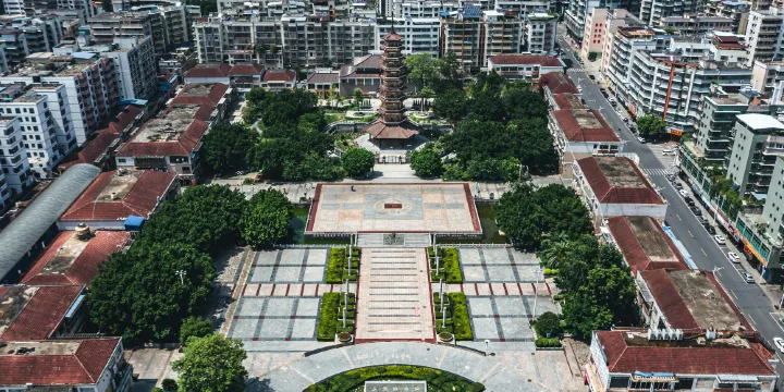 三影塔位於南雄市中心車水馬龍之處,也是南雄市的地標性建築,初建於北宋年間、公元1009年前後,後於明代重修。高約50米的這座古塔是廣東省僅有的有絕對年份可考的北宋早起磚塔,相傳此塔落成時,在光滑如鏡的塔壁上,清晰可見其反射出的三個塔身倒影,設計之精巧也可見一斑,“三影塔”便是由此得名。