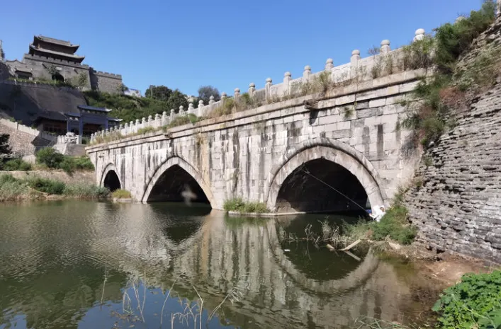 三原古龍橋位於咸陽市三原縣城北清峪河上,始建於明萬曆十九年,是當時的工部尚書溫純倡導修建,又名崇仁橋。橋身用石條鐵鉗構成,橋面是青石板鋪建,石縫用糯米和石灰汁粘合,兩側的石欄杆上雕刻有二十四孝圖。橋體造型宏偉壯觀,歷經明、清、民國三代仍屹立不倒,堪稱經典。