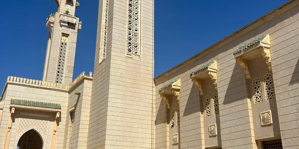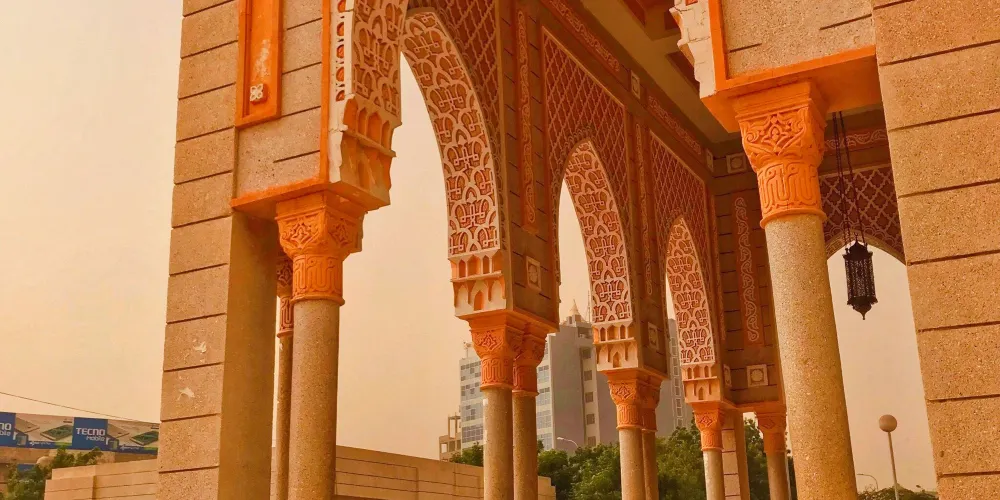 該寺廟位於毛里塔尼亞首都的中心,外觀雄偉壯觀,白色拱門宏偉大氣。