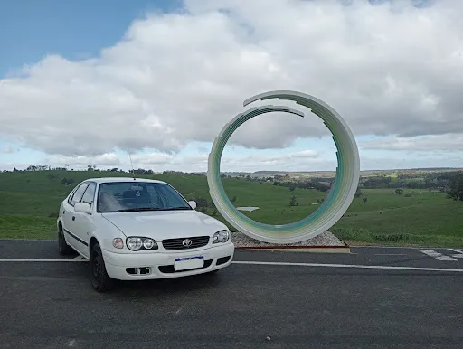 > Scenic view & sculpture’Convergence’ by Andrew Frazer