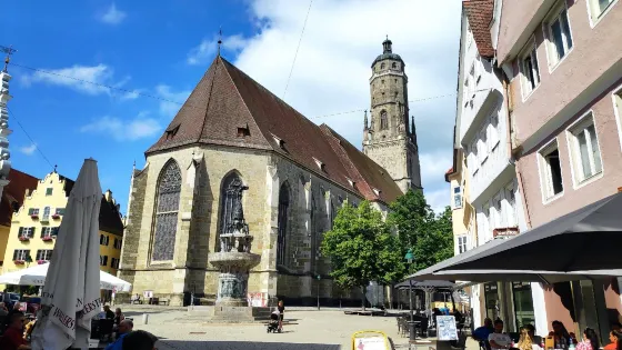 聖格奧爾格教堂建於15世紀,後哥特式建築,是德國的一個非常美的廳堂式教堂。教堂的鐘樓高89.90米,是小城納德林根的象徵,當地人親切地稱之為“達尼埃爾”。