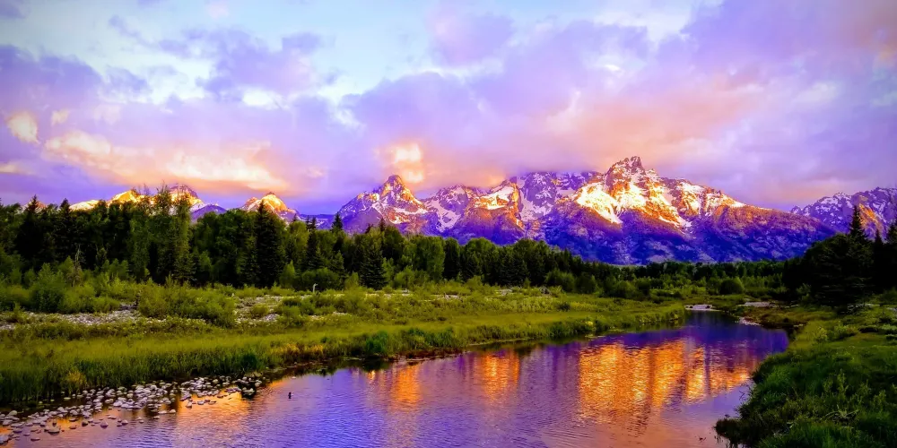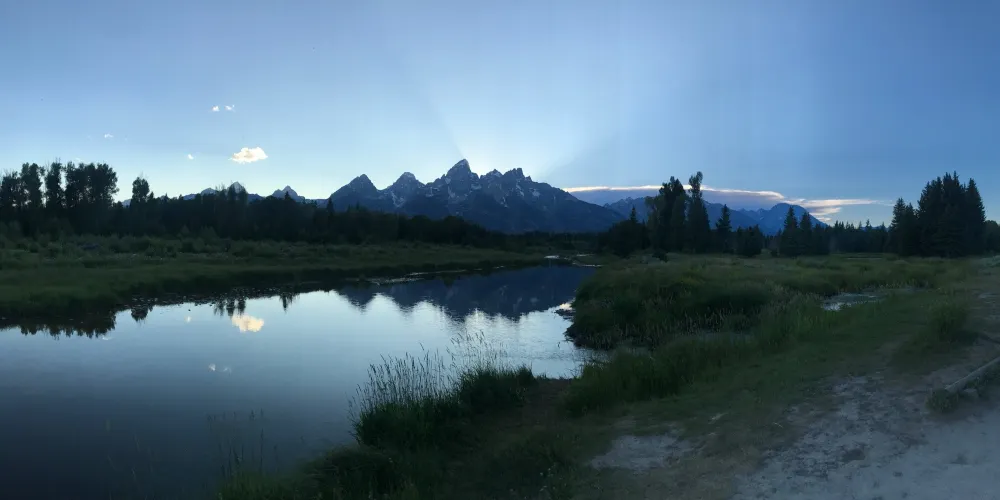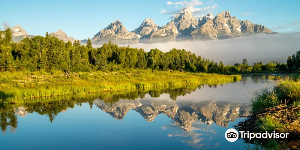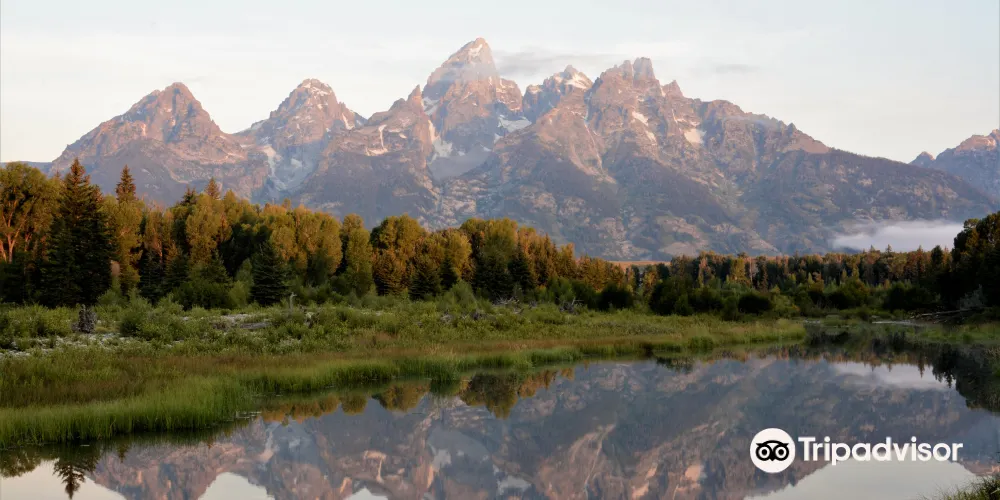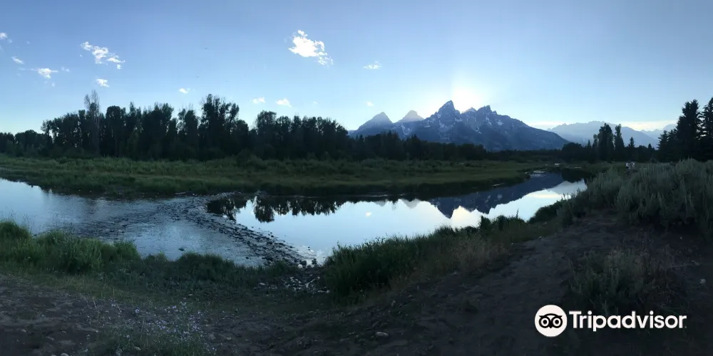 SchwabachersLanding為公認的拍攝大蒂頓日出的較佳拍攝點。在這裏你可以觀賞到初升的陽光灑落在大蒂頓峯上,平靜的蛇河映襯出壯麗山峯在温暖霞光中的柔美瞬間。這裏的河面十分平靜,你可以拍到很美的雪山倒影。運氣好的話,你還可以在蛇河中看到河狸。