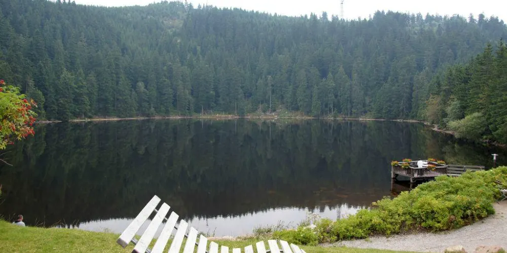 蒙梅爾湖在巴登巴登不遠處,是一個不大的被森林環繞的冰斗湖,繞一週也就15分鐘。湖的兩側都有上山的路,在入口處面對湖泊右手邊的一條山路上山,從左側可以坐旅遊bus上山頂,在山頂瞭望塔前可以看到萊茵河西邊的大教堂,是比較好的瞭望萊茵河的制高點,適合拍照。在山腳下的旅遊品紀念品商店,可以買到咕咕鐘還有嚐到地道的黑森林蛋糕。