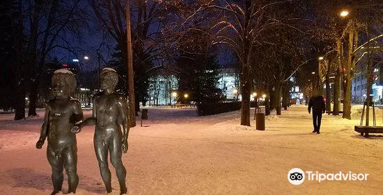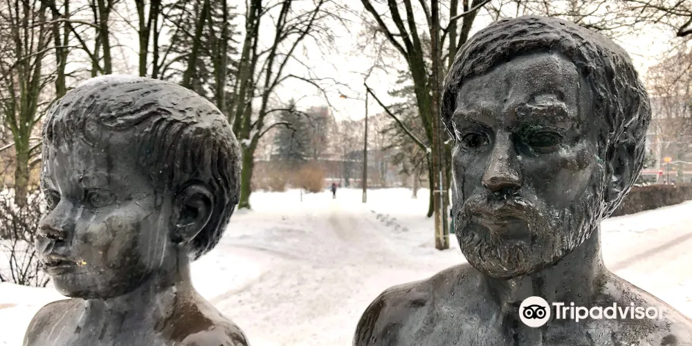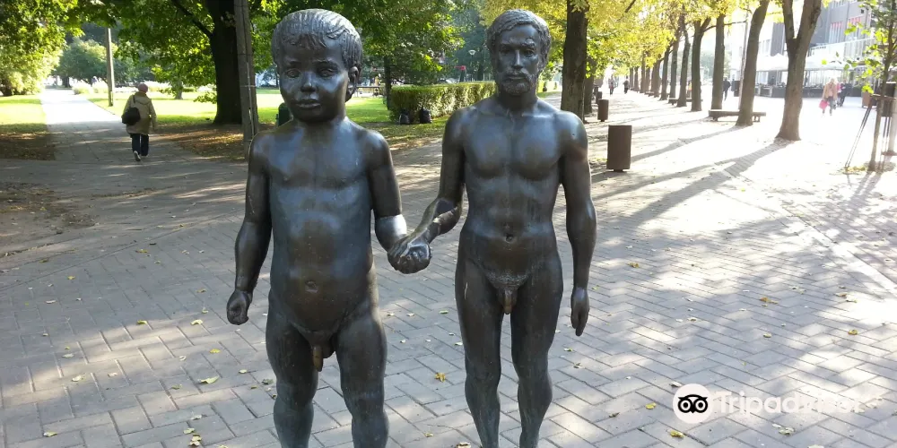> Father and Son' sculpture