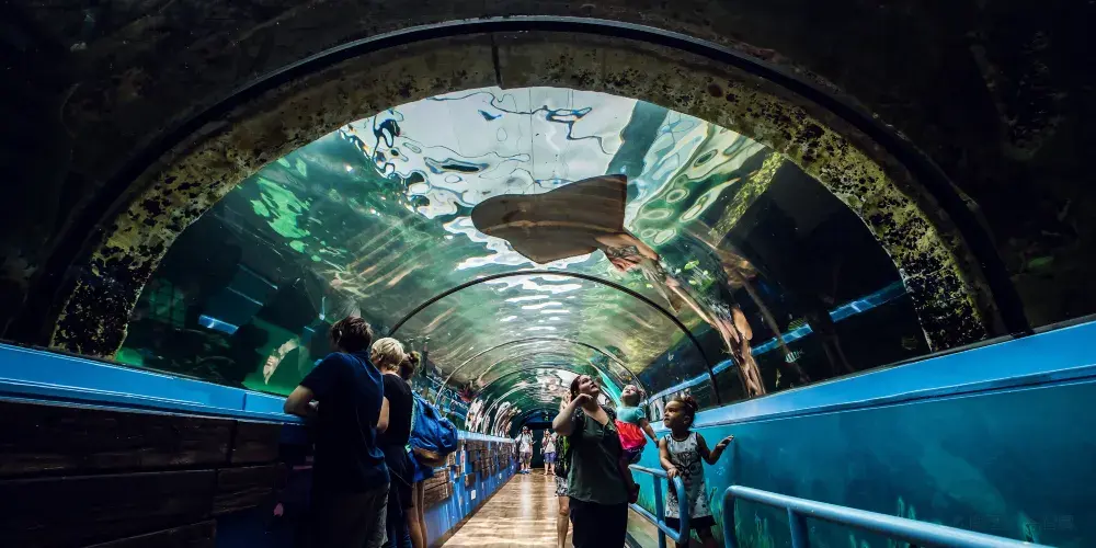悉尼水族館是全世界較大、壯觀的水族館之一,內有14個主題區和700多種海洋生物。這裏的通道長達百米,兩邊都是圓弧形的透明玻璃,可以與來自澳大利亞各大海域的水生生物面對面,比如鴨嘴獸、小丑魚、小企鵝以及會變性的拿破崙魚。除了近距離參觀和接觸海洋生物,你還可以參與投餵企鵝、動物表演、海洋專家講座等活動。