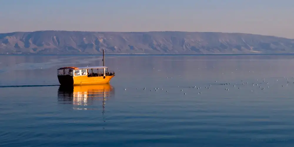 以色列東北部多是綿延的山地,雖不甚巍峨,卻林木蔥蘢。山腳下一泓湛藍的湖水,泛著粼粼波光映入人們的眼帘,那便是加利利湖。加利利湖是通用的英語稱呼,阿拉伯人管它叫“太巴列湖”。加利利的旖旎風光一向為人稱道。這裡,晨昏晴雨不同,湖光山色各異,吸引著熙攘不絕的四方遊客流連忘返。