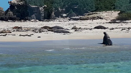 海豹島位於西澳的珀斯區域,臨近企鵝島。這裡是《妻子的浪漫旅行》的取景地之一。海島上生活着許多海豹,有的慵懶地躺在沙灘上曬太陽,有的在海里自由地游泳嬉戲。此外,罕見的南方海象幼崽也曾經在這個島上誕生。