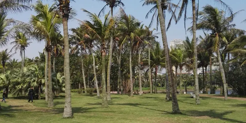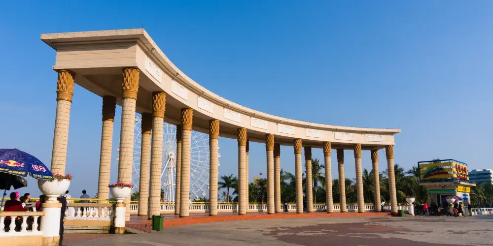海濱公園位於霞山區東北角海濱,這裡有細白的沙灘、藍色的海水、挺拔的椰樹,富有亞熱帶海洋風光,被稱為湛江的“城市客廳”。海濱公園雕塑大門為歐式建築風格,由幾十根圓柱頂起一弧形柱廊,上方有著漢白玉浮雕,浮雕描繪了湛江的百年曆史。