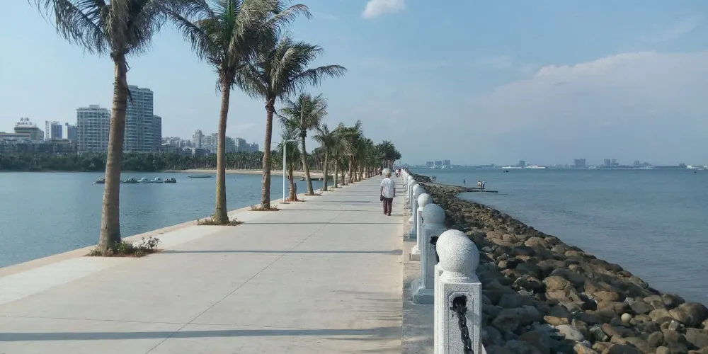 則評價霞山觀海長廊全長約1.7公里,分為南、中、北三個區。南區較狹長,以紫荊廣場居中,綠化很多,擁有上萬株的花木。中區地形寬廣,有園路通繞,整體以草地為主。北區以“海螺廣場”為主,種植了不同棕櫚植物。停在霞山觀海長廊上的巨型客輪“海上城市”也是一個景點,站在船頂,可以將城市風光一覽無遺。