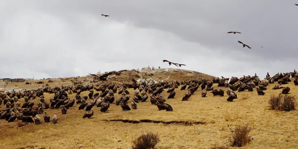 色達天葬台位於四川省甘孜藏族自治州色達縣,是藏傳佛教文化中重要的宗教場所之一。天葬作為一種傳統的藏族喪葬儀式,體現了藏族人對生命和自然的獨特理解。色達天葬台坐落在群山環繞的開闊地帶,周圍環境寧靜,適合遊客體驗和了解西藏文化。