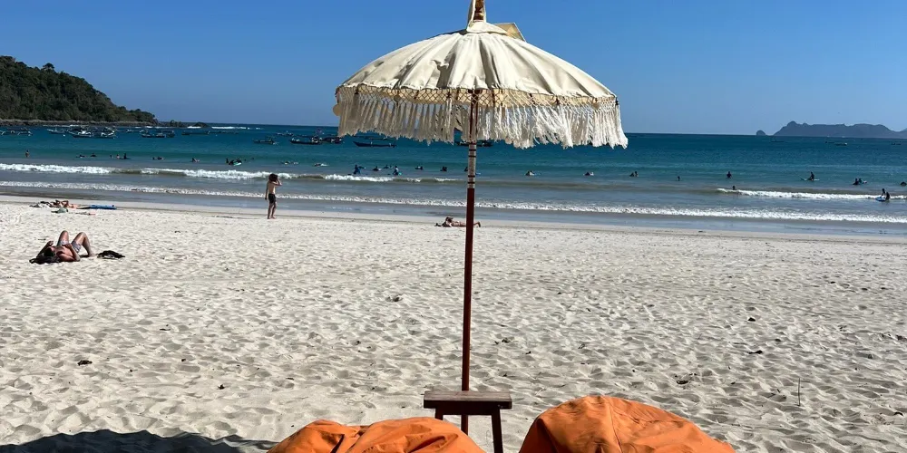 柔細的白沙,廣闊的海灘伴著周圍小島的美景,很好的是,這裡並不擁擠。這裡真的是一個很適合學衝浪的地方,浪約1m左右高,此地有相當多教衝浪的店家,也有很多觀光客來到此地學衝浪, 這邊的浪不會太大 。