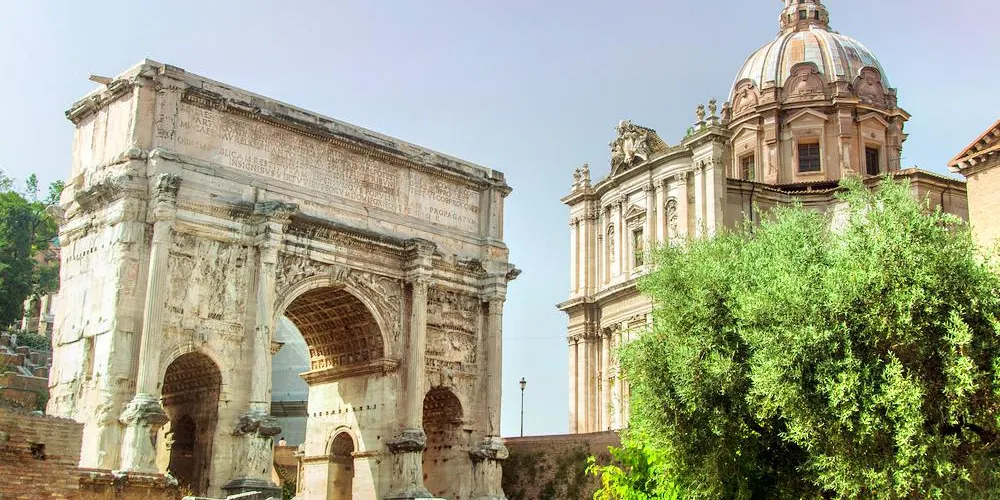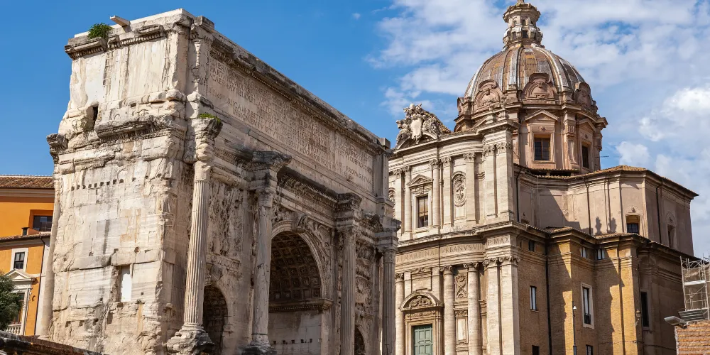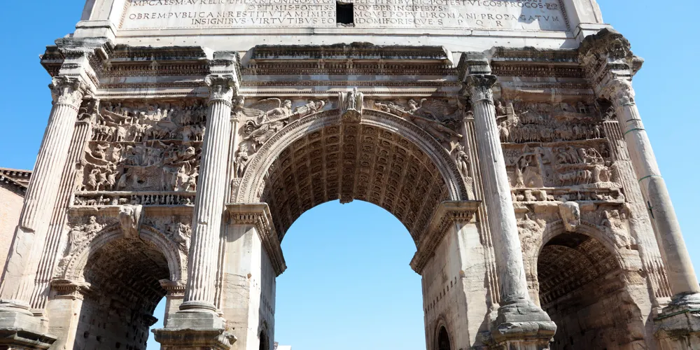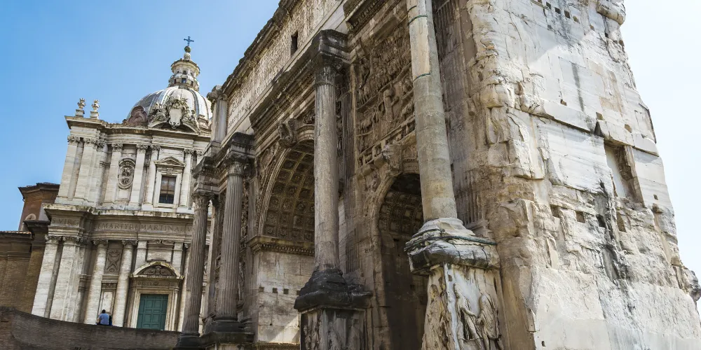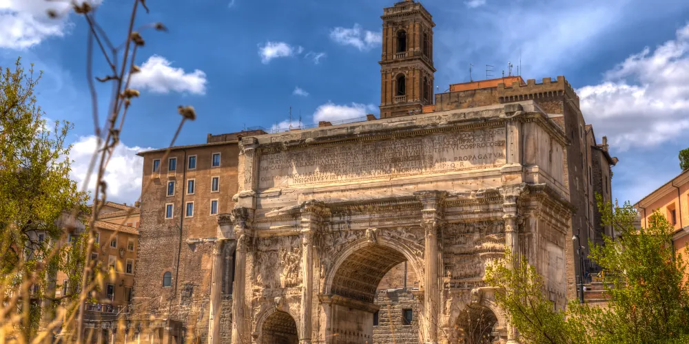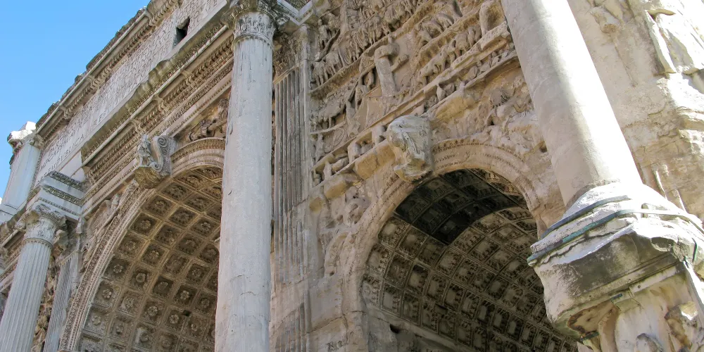 該建築是古羅馬廣場上現存的兩座門之一,它位於古羅馬廣場西北端,是一座白色大理石建築,建於公元203年。該門是為了紀念塞普蒂米烏斯·塞維魯皇帝(emperor Septimius Severus)和他的兩個兒子卡拉卡拉(Caracalla)和塞普提米烏斯·蓋塔(Geta)在194或195年和197-199年兩次戰胜波斯。