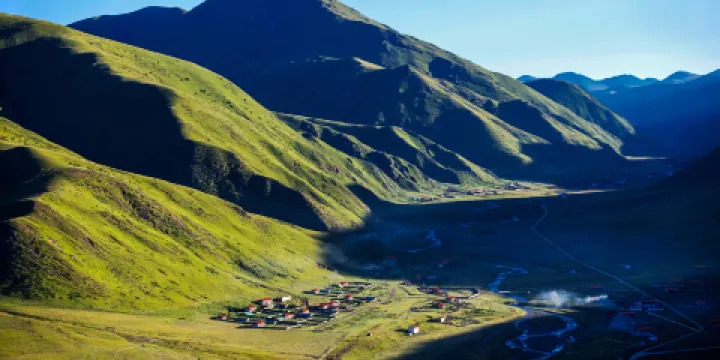 - 4.5分距離市中心5.3公里色達金馬草原位於長江主要河系大渡河、雅礱江、金沙江上游地帶,與甘孜藏區石渠扎溪卡草原構成境內的天然牧場。沿色曲河北上,河的兩岸,遍布牧草茂盛、開滿各色野花的草溝,延綿起伏的山脊,向東西方向延伸而去。還有像音符一樣流動的黑色犛牛和白色羊群,蔚藍天空中飄過的大朵白雲,都構成一幅美麗的畫卷。