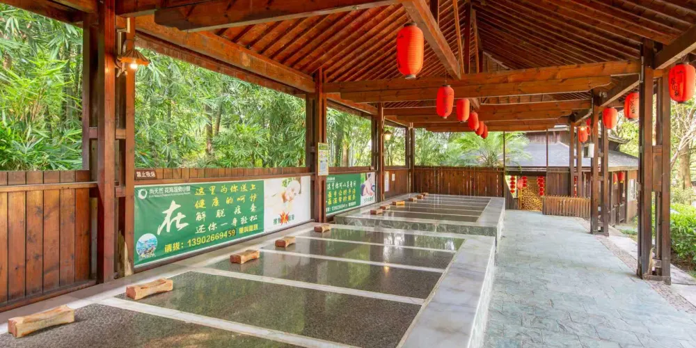 尚天然温泉度假區利用本地珍貴的資源,給忙碌的都市人提供了修養身心的好去處。度假區是圍繞仙池山的天然地勢建造而成,地面積1200畝,以生態、休閑、文化、度假、娛樂、運動、會議、別墅、美食等多功能為一體的大都市近郊旅遊文化休閑度假之場所。