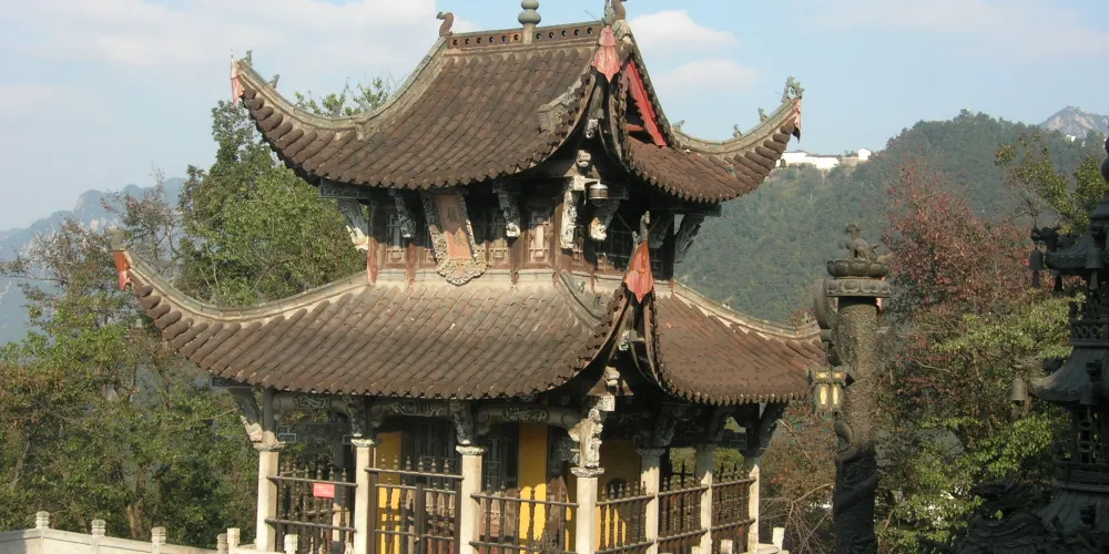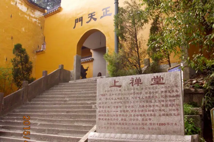 上禪堂西崖有金沙泉,泉畔新建滴水觀音亭。金沙泉深不盈甌,四時不竭,“金沙泉”三字系唐朝大詩人李白所題。傳八世紀中期,李白曾在九華山隱居,金沙泉為李白的洗硯處。遊人在此可以欣賞、品嘗金沙泉水。