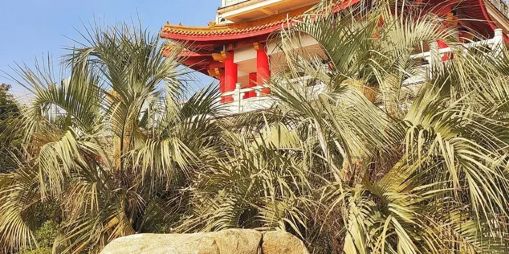 東海觀音寺,規模不大,但觸摸生奇,含情多致,曆史非常久遠。相傳,五代後梁貞明二年(公元916年),日本有一個高僧叫慧鍔,身負重任,曆經艱難,爬山涉水,風塵僕僕走了九九八十一天,終於來到中國山西五台山,準備請其中的一座檀香木雕觀音像回日本供奉。五台山的方丈見慧鍔十分虔誠,便贈於他。慧鍔高興極了,手捧觀音像,立即返回,來到大海邊,他三次起航,欲東渡日本,卻被風暴、雲霧、鐵蓮花三次所阻,不得不將這尊觀音像就近供奉在普陀山的雙峰山下。