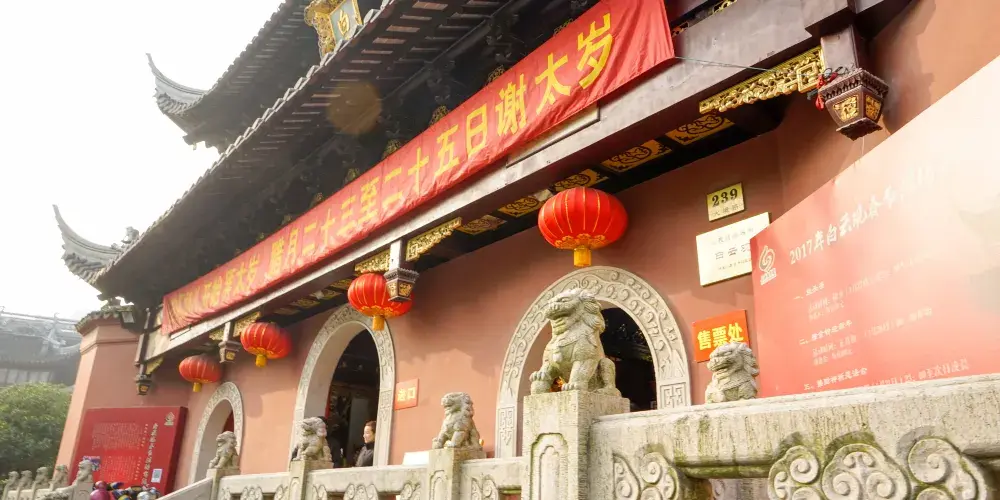 白雲觀是上海道教協會和道教文化研究中心的所在地。清代末年,嘉定道士徐至誠在東星橋建雷祖殿。光緒八年(公元1882年)將雷祖殿移至今址。後徐至誠請得《道藏》計8000餘卷,雷祖殿更名為“海上白雲觀”。白雲觀規模宏大,是上海道觀之首。現保存部分建築:靈宮殿、靈宵金殿、老君堂、雷祖殿等,其現存的七尊明代銅像,為全國其他道觀所未見。現白雲觀的鎮觀之寶明版《道藏》經已移至上海圖書館珍藏。