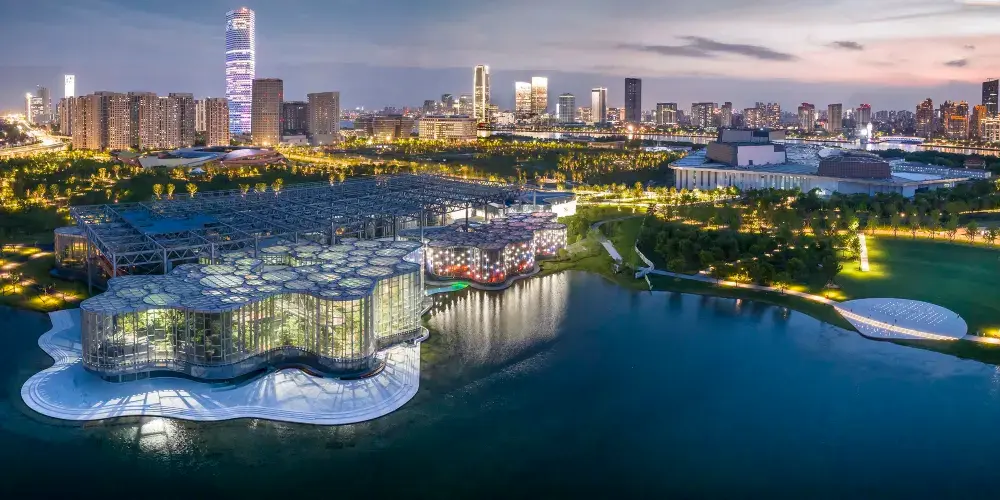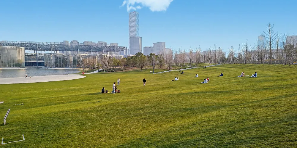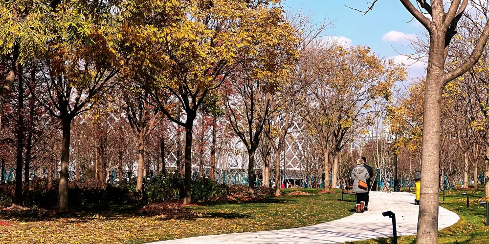 上海世博文化公園以歷史水系、工業記憶、世博肌理為代表元素,疊加森林、濕地、草坪,形成“水、地表、人文、自然”多重層疊的景觀結構體系;世博肌理的景觀化延伸,實現了世博精神的延續,呈現了從世博會園區到城市中心生態體驗區的轉變;疊山理水,力求自然,融入江南文化元素,展現江南園林特色的申園以園中園形式,演繹了森林和園林的交融共生;保留喬木和新種喬木構成的七彩森林,繪就了城市森林到自然森林的綿延畫卷。