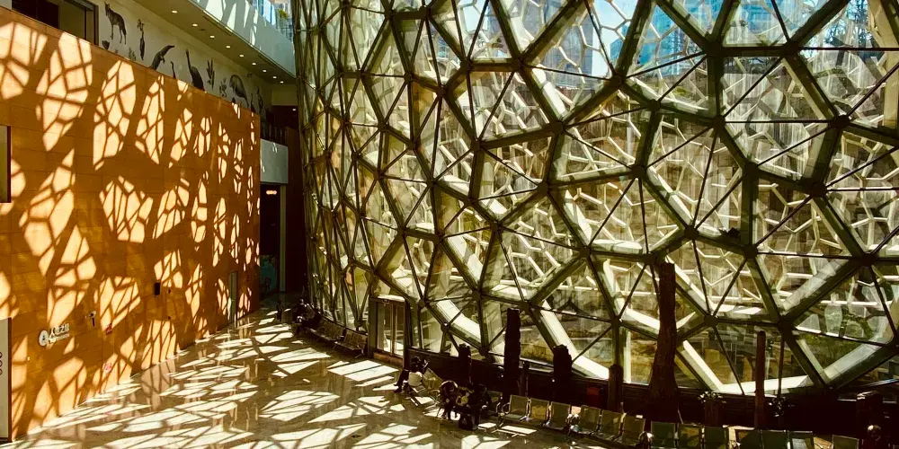 上海自然博物館位於靜安雕塑公園,場館宛如一隻“綠螺”,外觀獨特。如今的新館內展出了上萬件標本藏品,內容豐富,尤其以一副體長約26米的中加馬門溪龍的骨架極為搶眼,放在展廳中央,十分吸引人眼球。你還能探索宇宙的發展歷程,觀察猴子、孔雀等動物標本,親手挖掘各種化石,是親子遊不錯的選擇。