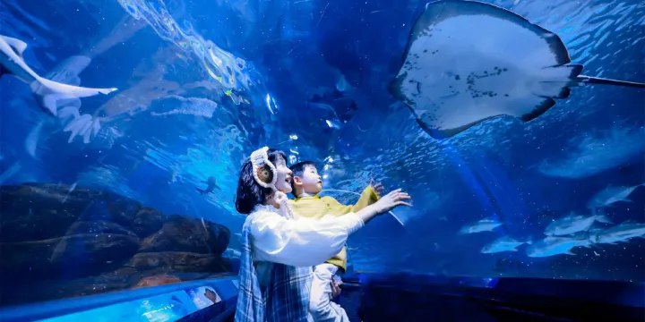 在新奇獨特、風光各異、美輪美奐、自然歡快的海底世界,在450多種,超過15000條魚兒的簇擁下,引領每一位遊客穿越五大洲四大洋,經歷一次終生難忘的“海洋之旅”。