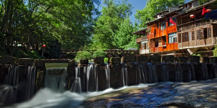 上里古鎮位於雅安市雨城區,小鎮依山傍水,許多明清風貌的吊腳樓式建築保留至今。古鎮不大,可以去感受一下古鎮“井”字的佈局(取“井中有水”防止火患之意)。古鎮流水環繞,面向田野小丘,與四周古樹、溪水、古橋構成一幅田園山水畫。上里古鎮初名“羅繩”,是歷史上南方絲綢之路臨邛古道進入雅安的重要驛站,是唐蕃古道上的重要邊茶關隘和茶馬司所在地,近代又為紅軍長征過境之地。
