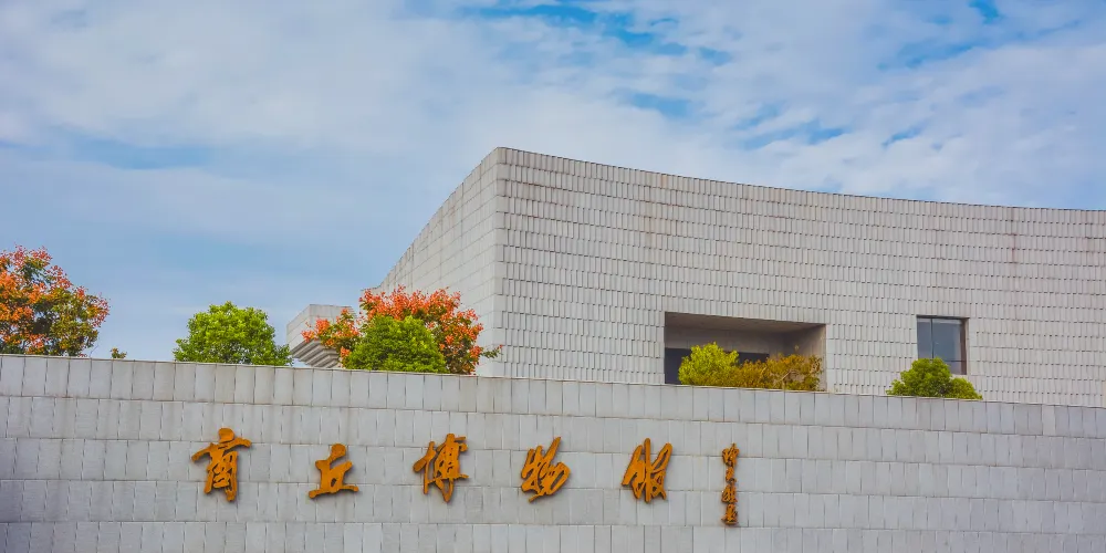 商丘博物館,是中國首座集中展示商文化歷史文明的博物館,又稱為“中國商文化博物館”,也是充分展示商丘古今文明史的商丘市非常大的綜合性博物館,在河南省商丘市睢陽區商丘古城西南1.5公里,西部毗鄰華商文化遺產主題公園,南臨華商大道。商丘博物館在1983年10月成立,舊館在2004年被拆除,新館2009年12月奠基,2010年開工建設,歷經6年,在2016年5月18日試開館,6月6日正式開館。新館總佔地面積為74000平方米(約110.4畝),總建築面積是29672平方米,館藏文物兩萬件,多數為商丘本地區田野考古發掘出土或民間徵集所得。進入商丘博物館,先由面向華商大道的大台階和坡道登臨堤台,沿大引橋淩水進入博物館序言大廳。站在大廳上,可以居高臨下俯視12米高的序言大廳背景牆,領略由“玄鳥生商”肇始的神祕、厚重、悠遠的中國商文化歷史。