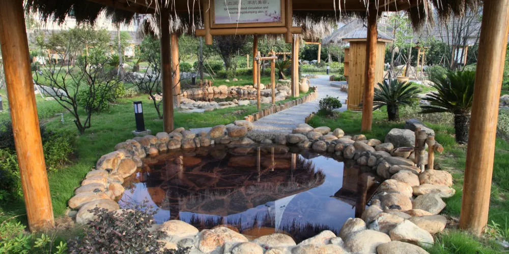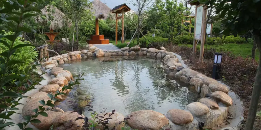 上湯溫泉屬自湧型溫泉。景區內純天然流動溫泉,水源豐富,取之不盡,不需循環再用。上湯溫泉區佔地面積30000平方米,分SPA動感區、水上樂園、百草園、山林靜泡區等區域。共有各具特色的溫泉池60多個,可同時容納800多人。還有閒情閣、死海鹽浴供遊客休憩享受。