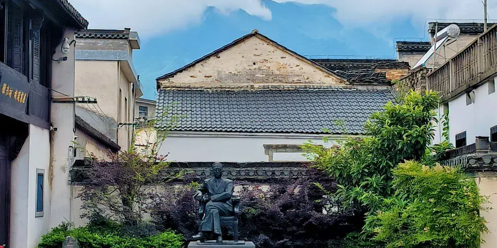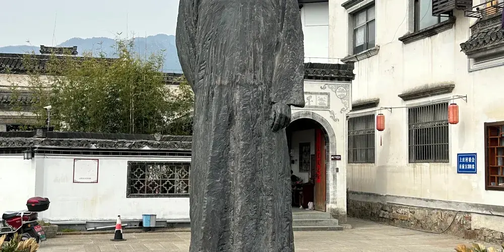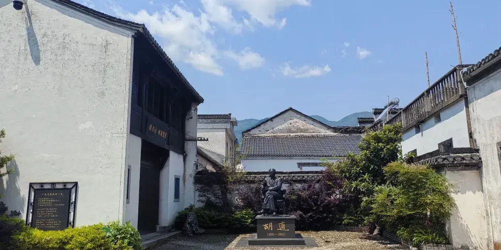 胡適故居在上莊村內。清光緒二十三年(1897)建。正屋南向,磚木結構,二進三間兩廂,“回”形通轉樓。佔地208平方米,建築面積350平方米。門面二柱單門一樓式,上嵌磚雕等。門前黑底金字“胡適故居”橫額,下掛胡適中年畫像。東西分列茶几、靠背椅,壁間掛胡適直系親屬圖表。