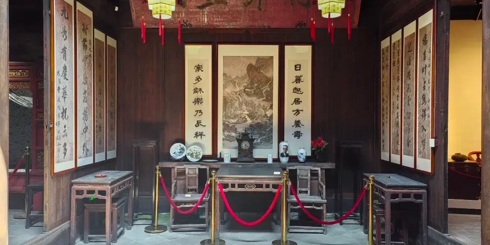 後堂進深較淺,堂前掛胡適父親畫像,東側有胡適生母照片。故居還陳列胡適各時期照片。