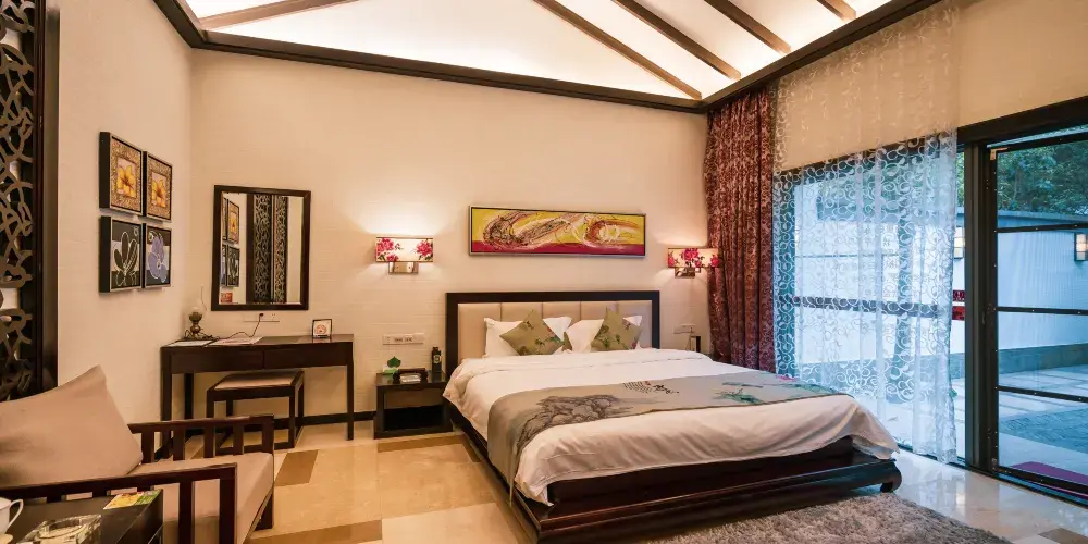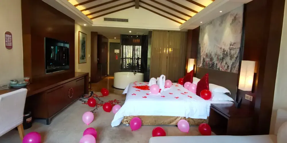 韶關新豐雲天海溫泉地形狹長,周圍林木茂盛,還有清澈的溪水為伴。集豪華客房、中西餐廳、大型露天溫泉、康體娛樂、大中小型會議室為一體,是當地人以及各地遊客休閒度假的理想地。度假村屬獨特的山地氣候,引進巴西野生牡丹,花期很長。春夏在這裡吸氧賞花,秋季看滿山紅葉,而冬季能欣賞漫天飛的雪花。