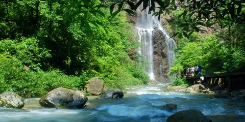 張家界大峽谷景區位於張家界市慈利縣,峽谷裡植被茂盛,空氣清新,飛流瀑布、小溪泉水隨處可見,猶如一個天然大氧吧。除了欣賞大自然風光,景區值得一玩的是玻璃橋——張家界大峽谷玻璃橋,站在橋上,腳下400米處的谷底風光盡收眼底,非常挑戰你的心臟。