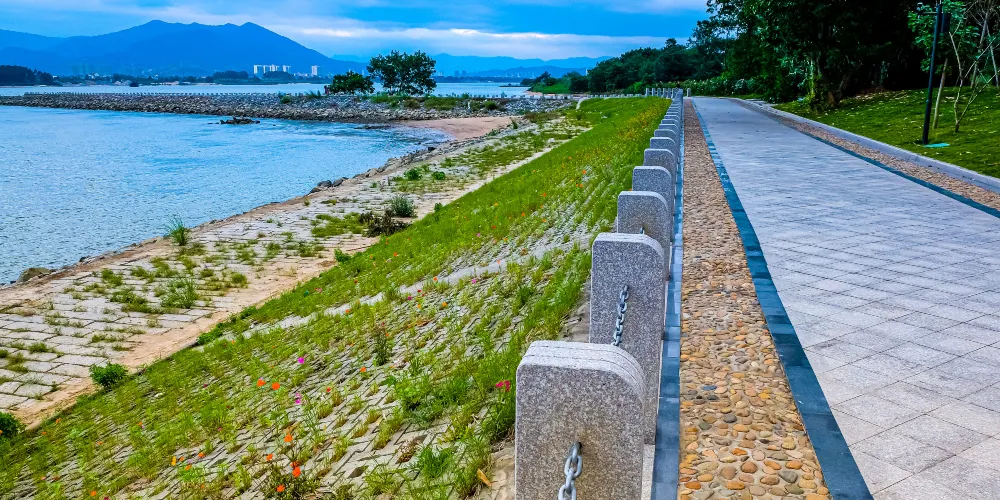 福州沙灘公園位於洪塘大橋兩側的沿江地塊,既有兔耳嶺的怪石之景,又有海岸沙灘之美,公園西鄰烏龍江,東連妙峯山,沿線規劃長約3公里,寬30~200米,總面積約20萬平方米。
