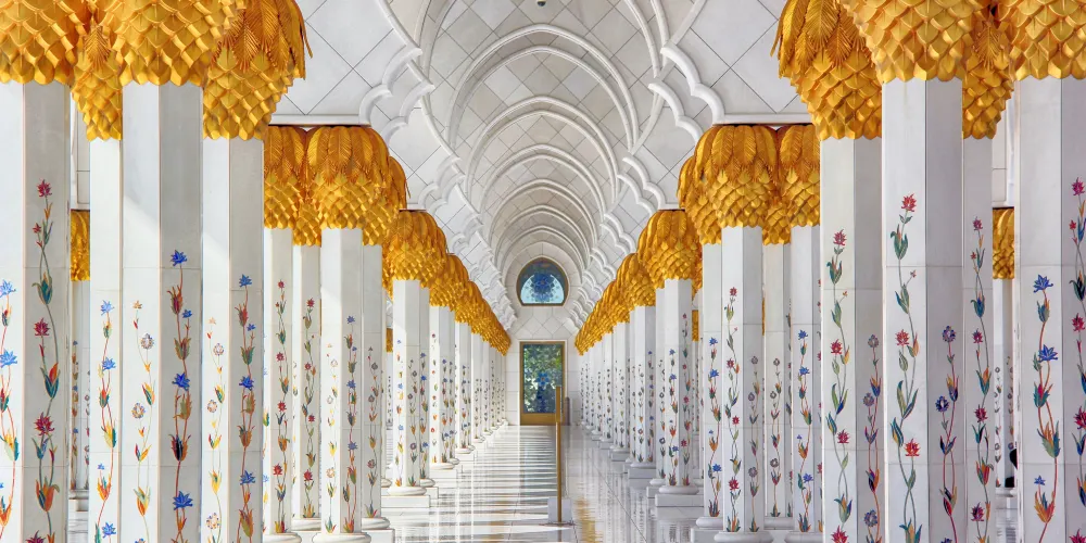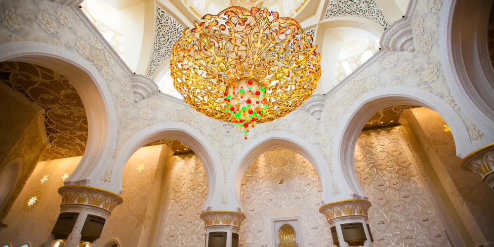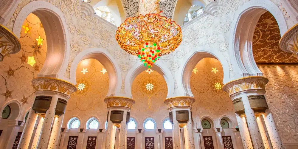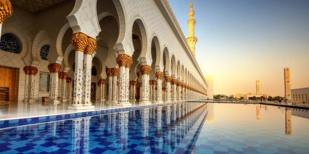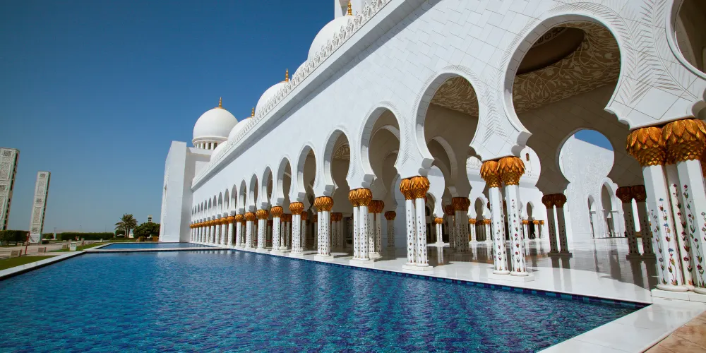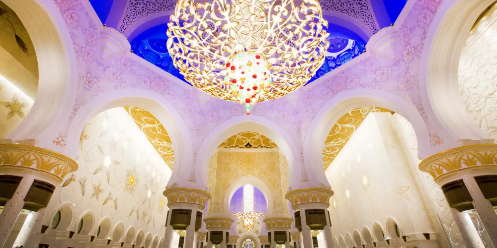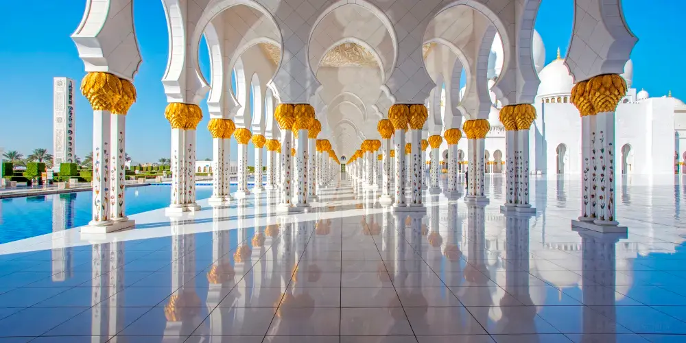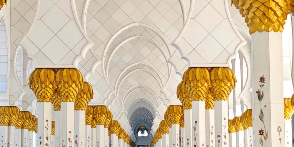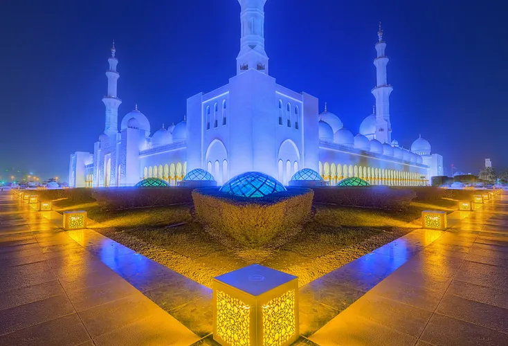 謝赫紮耶德大橋被稱為“史上結構最複雜的橋樑”,有著優美的弧形拱狀造型,宛如起伏的沙丘。該橋長842米,高64米,由普利茲克建築獎得主紮哈·哈迪德設計。白天可以欣賞橋面從對稱的鋼鐵拱架上“落空”而現,宛若波浪般的流動剪影。到了夜晚,則有淡雅的霓虹燈光映照著橋樑的輪廓,異常漂亮。