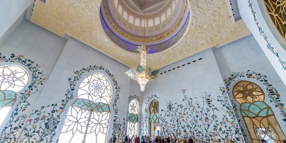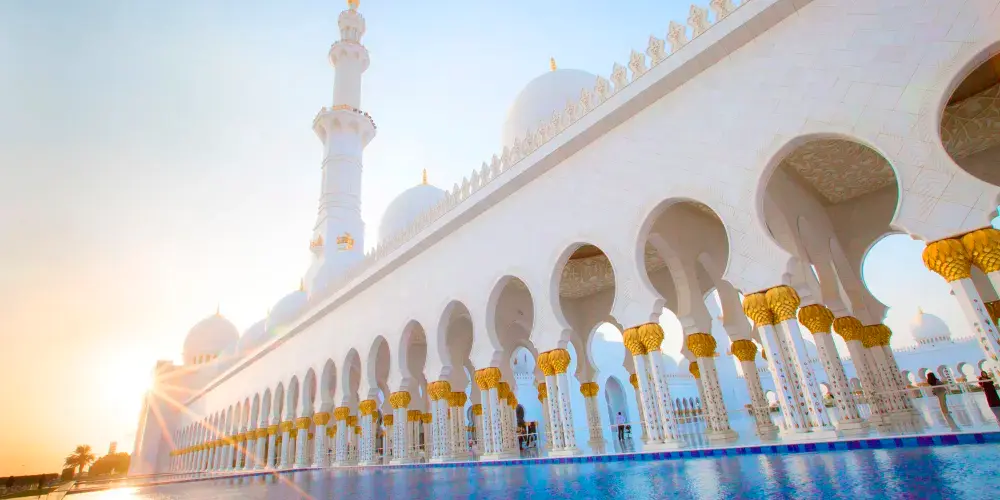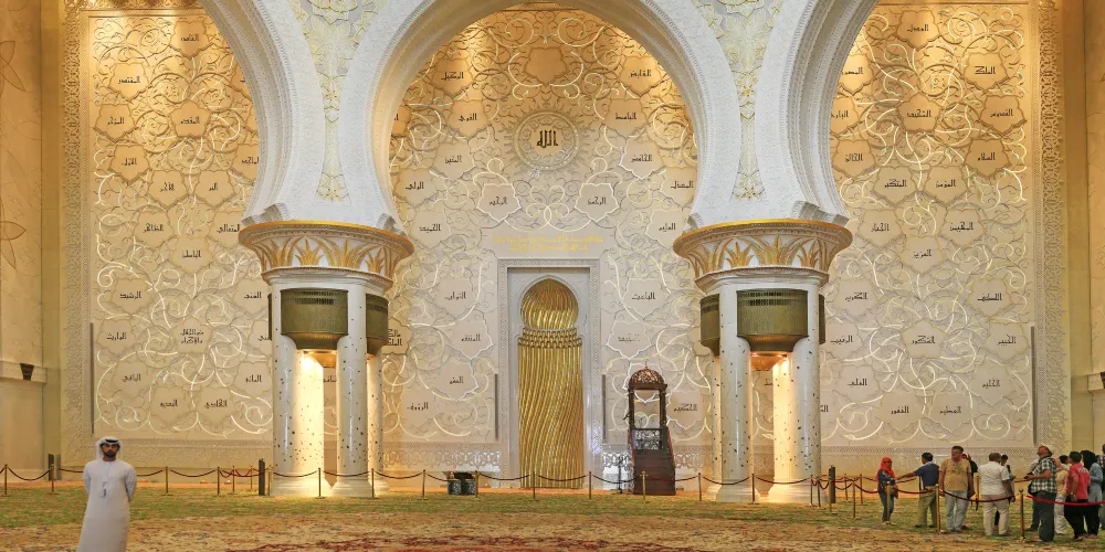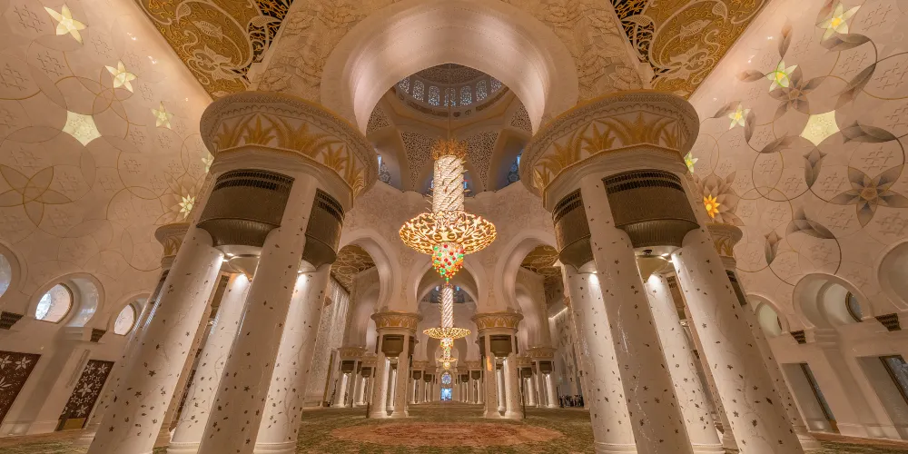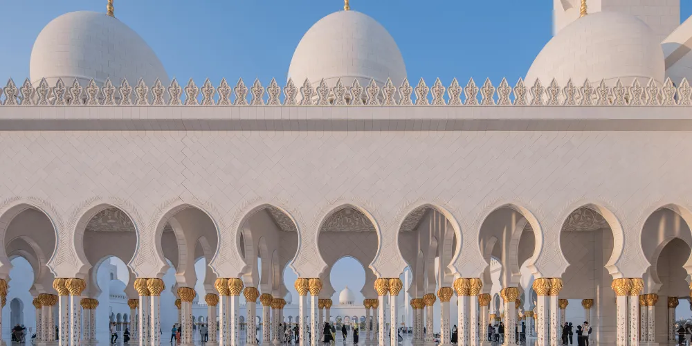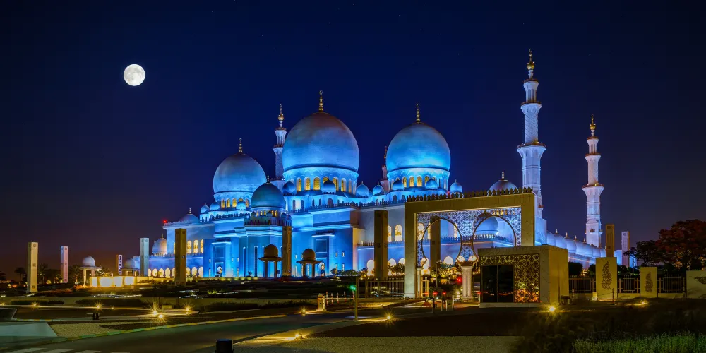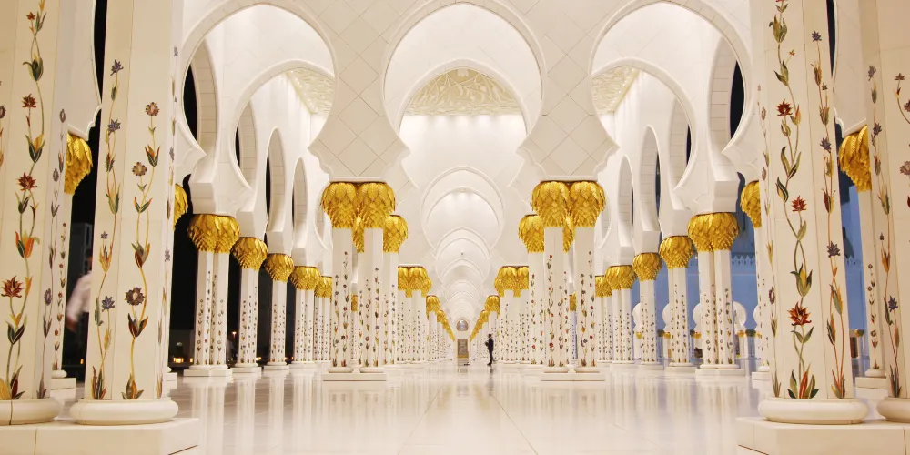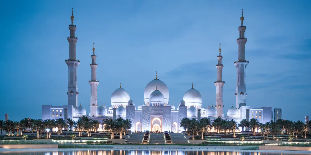 謝赫紮耶德大橋被稱為“史上結構最複雜的橋樑”,有著優美的弧形拱狀造型,宛如起伏的沙丘。該橋長842米,高64米,由普利茲克建築獎得主紮哈·哈迪德設計。白天可以欣賞橋面從對稱的鋼鐵拱架上“落空”而現,宛若波浪般的流動剪影。到了夜晚,則有淡雅的霓虹燈光映照著橋樑的輪廓,異常漂亮。