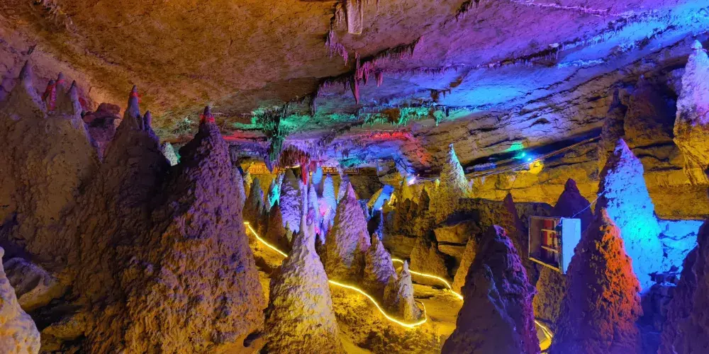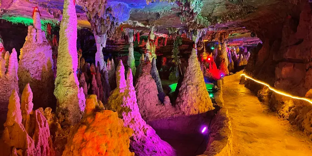 聖靈山大溶洞地處景觀迷人的資中縣金李井鎮聖靈山半山腰上,處於北緯29度47分46秒,東經104度40分32秒,是中國西部喀斯特淺丘陵地區非常珍貴而又難得的一大奇景。聖靈山大溶洞曾經是六億年前的古地中海,由於歐亞大陸架的抬升,大自然的神奇造化,孕育而成,主要景點有溶洞群。與天坑、恐龍腳印遺址和聖靈寺一起組成聖靈山風景區。它距縣城十三公里,離成渝高速公路魚溪站出口僅三公里,是成渝旅遊線上獨特而又難得的景區。