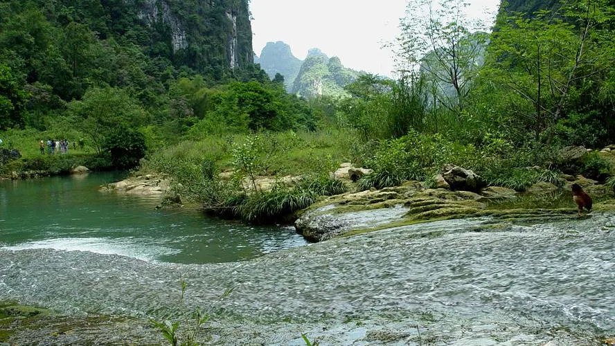 則評價黑水河位於崇左市大新縣,從通靈大峽谷前往德天大瀑布的途中便可看到。黑水河的水並不是黑色,而是碧綠的河水與兩岸的山峰倒影相映成“黛”色,因而得名“黑水河”。乘船遊覽是大多數遊客都會選擇的遊玩方式,沿途可看到山巒重疊、植被茂密之景,它們倒映在碧綠的河水中,展示著大自然的原生態之美,給人舒適愜意的感覺。
