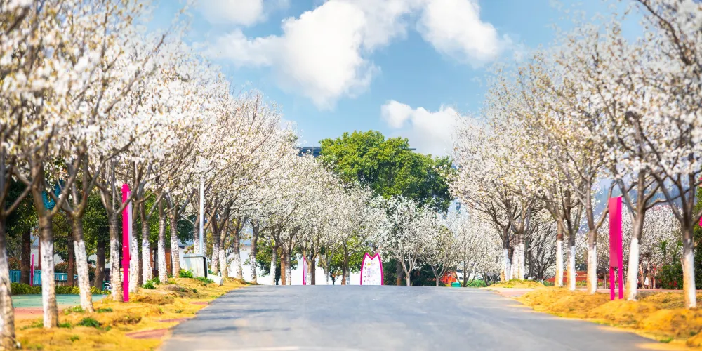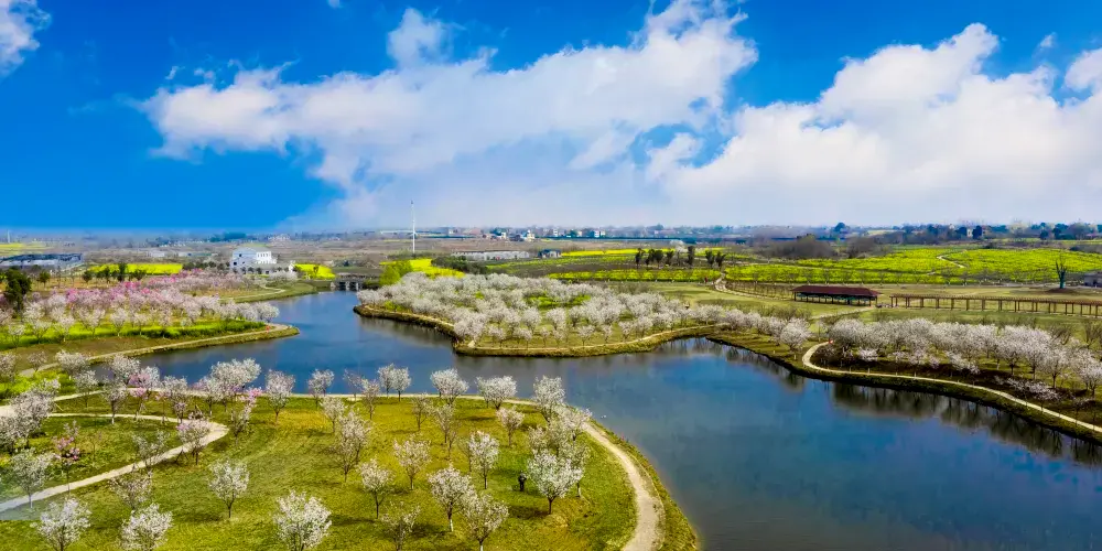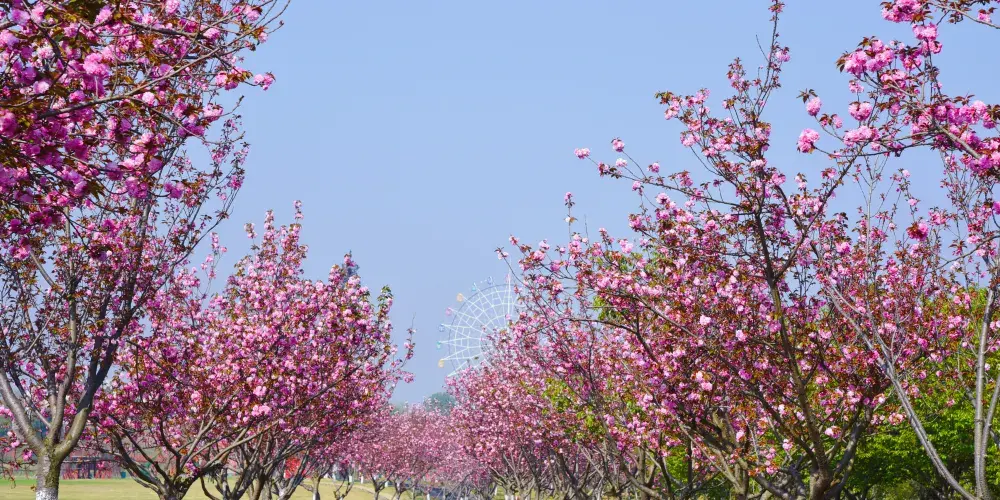盛世聞櫻景區是華中地區紫荊櫻連片種植的櫻花主題景區,景區佔地面積共3902畝。建於2016年,2023年獲評國家AAAA級旅遊景區,景區內生態環境優美,水域風光秀麗,人文資源豐富,名勝古蹟眾多,植被覆蓋率達到80%以上,其中千畝櫻花種植羣更是國內罕見,景色堪稱一絕。