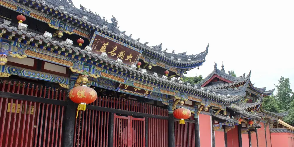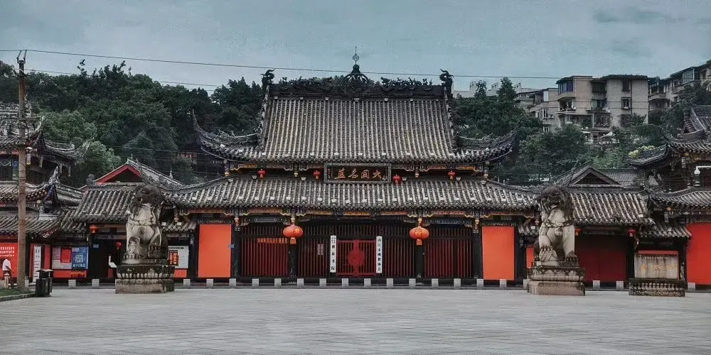 內江太白樓主樓為一座仿唐三層樓閣,紅牆青瓦,古樸典雅。兩側分別為遊子亭、故人軒。
