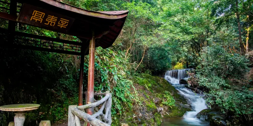 東天目山景區位於浙江省杭州市臨安區,是一處集自然風光與佛教文化於一體的國家AAAA級景區。景區由東瀑大峽谷、林海大峽谷(西瀑大峽谷)、昭明大禪院等區塊組成。這裡山清水秀,空氣清新,有豐富的植被資源,被譽為「華東植物基因庫」,同時也是佛教聖地,擁有眾多歷史悠久的寺廟和古蹟。東天目山的瀑布景觀尤為壯觀,其中東瀑大峽谷全長1.2公里,是天目山脈中典型的峽谷,峽谷內茂盛的植物遮天蔽日,原始良好的生態環境,使得眾多動物在這裡繁衍生息。昭明大禪院是淨土宗的一個重要道場,寺院殿宇宏偉,鐘磬悠揚,是當代名僧淨空法師極力推薦的國內重要念佛道場。